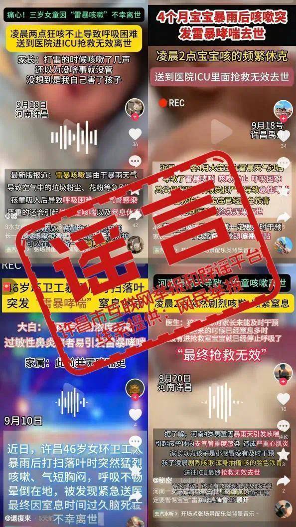 最近,某些平台上的多个帐户发布了一段视频,上面写着“ Xuchang,Henan,在大雨之后,引起了雷暴,风暴咳嗽和导致死亡的哮喘。”在与Xuchang市政卫生委员会进行验证之后,Xuchang市医学与健康机构尚未发现一个事件,该事件指出“风暴导致哮喘并在救援后死亡”。有传言称在线流通的所有信息。据了解,“雷暴哮喘”是指在暴风雨中或暴风雨后突然发生的急性攻击或支气管哮喘的恶化。通常,它发生在花粉季节,并可能导致当地哮喘的集体爆发。雷暴的哮喘不是一种独立的疾病,而是闪电气候和对花粉过敏的综合作用的结果。在电动暴风雨之前,花粉颗粒随着热量前的气流增加,吸收后肿胀在较小的颗粒中爆炸,很容易吸入下呼吸道,导致呼吸道炎症,支气管痉挛和急性症状,例如咳嗽,胸部张力。雷暴哮喘的出现需要“特定人群 +特定气候 +环境因素”的同时影响,这相对较少,但由于影响很大和大量患者,因此不应亮起。互联网信息和卫生部门将提醒大家,如果您遇到雷暴“嗅探,胸部紧张,呼吸困难,间歇性的声音,紫色的嘴唇”,您也应该紧急治疗“急性哮喘”,即使它没有哮喘的史。过敏性鼻炎,哮喘,儿童或老年患者应在警告性侵犯期间遵循医疗建议,并避免出门时出门,尤其是在浓度高的季节。没有法律,互联网不是一个地方。传播谣言ND在Internet上的信息必须具有法律责任。我希望大多数互联网用户继续共同努力,以开发清晰清晰的网络空间,而不会传播谣言或相信它们。资料来源:官方的“ Qinglang Henan”微信帐户,Internet Xuchang上的信息