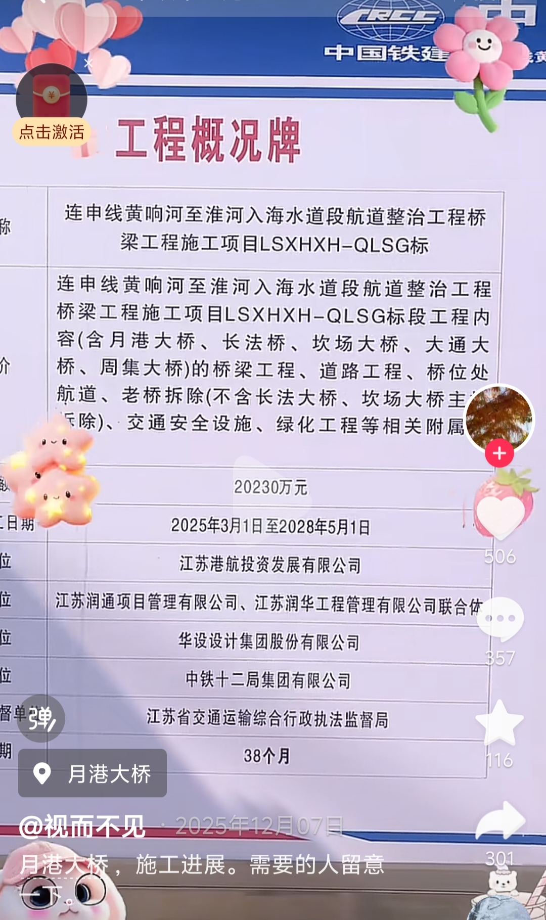 据央视新闻报道,记者从江苏省盐城市有关部门获悉,响水县月港大桥垮塌事故中,经市、地级大规模搜救,已找到3名失踪人员遗体。此次事故共有五人死亡。 2日17时46分,中国铁路十二局承建的联信线月港大桥施工过程中发生拉力拱梁垮塌。事故发生后,市县两级立即组织现场紧急救援处理。搜救行动已基本完成。海报新闻记者(微信记者:HaibaoNewsSw)注意到,2025年12月,有网友在短视频平台上发布了德响水县月港大桥工程概况及桥段安全网络管理公告栏。根据项目总结据了解,本项目为联信线黄湘河至淮河入口段河道整治及桥梁建设工程LSXHXH-QLSG标段。该项目简介为连津线黄象河至淮河入口段河道整治工程桥梁工程建设项目、LSXHXH-QLSG招标标段工程内容(含月港桥、长发桥、甘长桥、大通桥、舒吉桥)、桥梁工程、道路工程、桥梁位置水道、旧桥拆除(除主桥拆除长发、甘长桥外)及交通。安全。设施、绿化工程及其他配套工程 根据网友拍摄的项目概况图,合同总金额为2.023亿元,预计竣工日期为2025年3月1日至2028年5月1日。该项目为江苏港口航运投资发展有限公司,监理单位为江苏润通项目管理公司、江苏润华工程管理有限公司,设计单位为华舍设计集团有限公司。响水县人民政府官网此前也透露,响水县公安交通派出所于2025年3月22日至2027年6月16日对月港大桥、周济大桥实施交通管制,将其彻底封闭,并拆除重建两座桥。不过,响水县交通局领导却宣布,连信线关河至黄香河段河道整治工程将于2025年底竣工,目前正在建设的周集桥、月港桥、大通桥将于2026年9月建成通车。为什么工程建设当天就出现了三座桥?预计开业吗?很快?海报新闻记者致电该项目建设单位江苏港航发展有限公司及其工作人员,但表示不了解具体情况。月港大桥工程总结牌旁边的安全网管理公告牌上标明,月港大桥网长是技术主管石萌萌。海报新闻记者多次致电史某某,但接通后立即挂断。本项目招标公告以2024年11月江苏省公共资源交易平台公布的LSXHXH-QLSG标段建设项目、黄湘江联信线至淮河入海口段桥梁工程建设项目、航道整治项目为依据。投标人为江苏港口航运投资发展有限公司,月港大桥位于响水县月港村。老桥的主桥桥梁是简单支撑的。该桥采用混凝土斜拉拱建造,全长169米,桥宽9.5米,主跨51米。该桥起点编号为K0+867.880,终点编号为K1+169.24,全长301.36米,分四桥。跨度分布为(4×20+95+3×20+3×20)米。主桥为钢管简支带状拱混凝土桥,两侧通道桥为空心预应力混凝土板梁,跨度20米。主桥西侧采用20米空心板跨越胜利河。岳康桥位于13K+408号运河的起点和13K+508号运河的终点。 2024年12月4日,上述交易平台公告,中标单位为中铁十二局集团有限公司。欢迎您向我们提供最新消息。我们将制作一个一经通过,及时公告。海报新闻报道热线:010-64004224,举报邮箱:zhongbabaoliao@163.com。