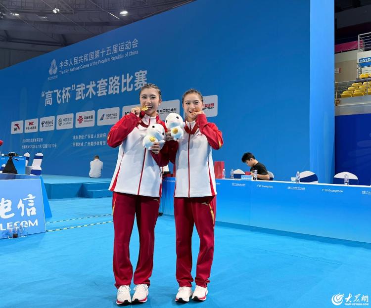 青岛运动员于文科、孙寿诺帮助山东队夺得全国混合团体套路武术冠军。